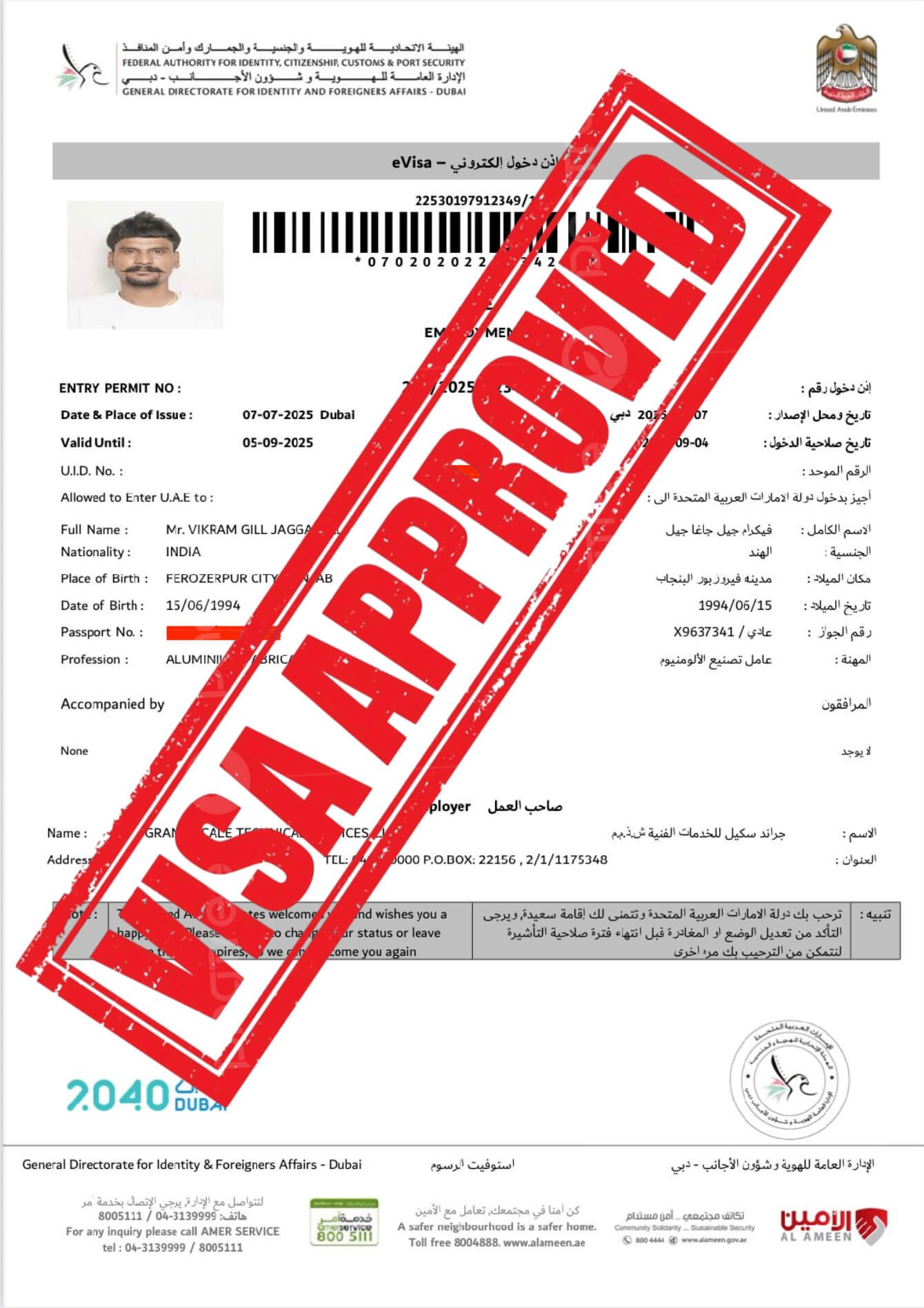 We are feeling proud to anouce that vikram gill got his Dubai Employement Visa with Help of AI Immigration Chandigarh Team